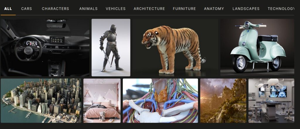 One of the largest and oldest 3D asset marketplaces. It offers professional-quality models for architecture, film, advertising, and games. Known for strict quality checks and royalty-free licensing.
